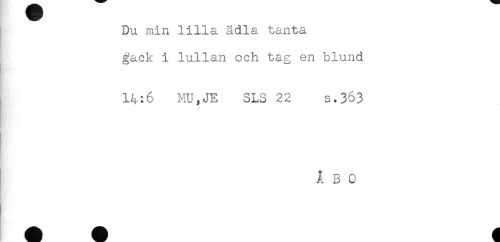 //// Du min lilla ädla tanta //// gäck i lullan och tag en blund //// 14:6 MU,JE SLS 22 s.363 //// ÅBO ////