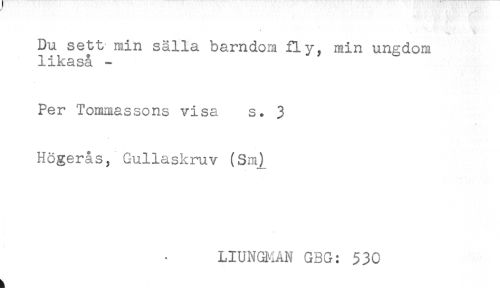 //// Du sett min sälla barndom fly, min ungdom //// likaså - //// Per Tommassons visa s* 3 //// \ //// Högerås, Cullaskruv (Sm_) //// LIUNGMAN GBG: 530 ////