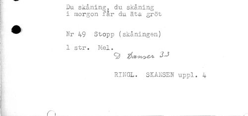 //// uu s^aningy o.u sKanmg //// i morgon far du åta gröt //// } ^ Nr 49 Stopp (skåningen) //// 1 str. Mel. //// i RINGL. SKANSEN uppl. 4 ////