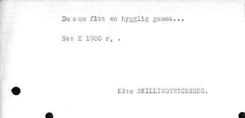 //// . . //// * - //// Du s om fått en hygglig gumma... //// HHM^WtMr; ** * //// Se: E 1900 r, . //// ^ KB:s SKILLINGTRYCKSREG. ////