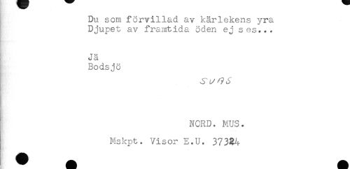 //// Du som förvillad av kärlekens yra //// Djupet av framtida öden ej ses... //// Jä //// Bodsjö //// NCRD. MUS. //// Mskpt. Visor B.U. 373^4 ////