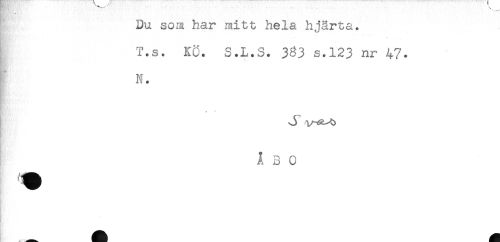 //// an //// Du som har mitt hela hjärta. //// T.s. Kö. S.L.S. 383 S.123 nr 47. //// N. //// Å 3 0 //// A ////