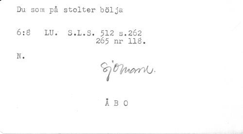 //// Du som pa stolter bölja //// 6:6 LU. S.L.S. 512 s.262 //// 265 nr 113. //// N. //// ÅBO //// \ __ ////