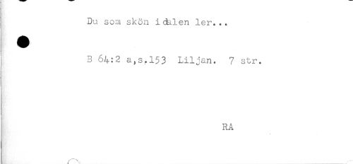 //// Du som skön icblen ler... //// B 64:2 a,s.l53 Liljan. 7 str. //// RA ////