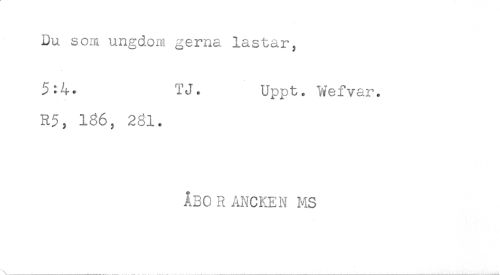 //// Du som ungdom gema lastar, //// 5:4. TJ. Uppt. Wefvar. //// R5, 186, 281. //// ÅBORANCKEN MS ////