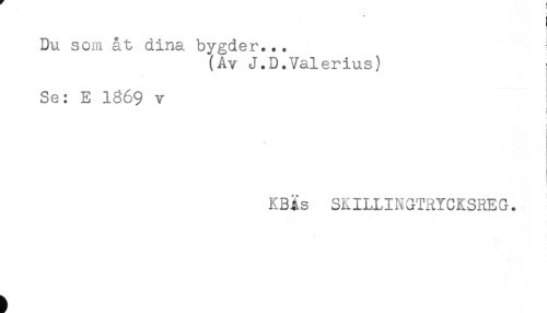 //// Du som åt dina bygder... //// (Av J.D.Valerius) //// Se: E 1369 v //// ! //// i //// < //// i //// KB^s SKILLINGTRYCKSREG. ////