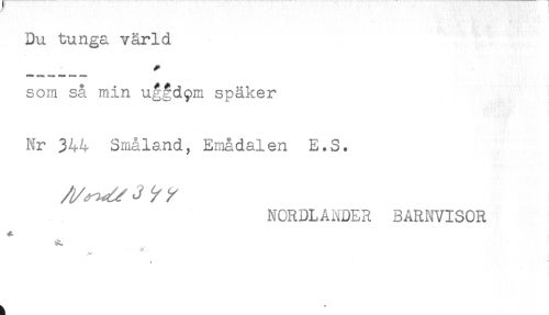 //// som så min uggdpm späker //// Nr 344 Småland, Smådalen E.S. //// NORDLANDER BARNVISOR ////