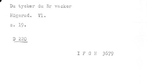 //// Du tycker du är vacker //// HOgerud. VI. //// s. 19. //// D 220 //// I F G H 3679 ////