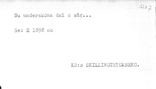 //// Du undersköna dal o säg... //// Se: E 1898 00 //// KB:s SKILLINGTRYCKSREG. ////