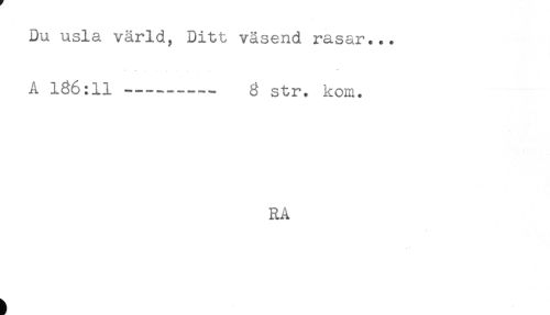 //// Du usla värld, Ditt väsend rasar... //// A 186:11--- g str. kom. //// RA //// t ////