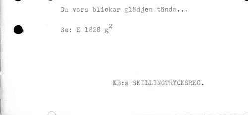 //// Du vars blickar glädjen tända... //// ^ Se: E 1628 g^ //// A //// . //// KB:s SKILLINGTRYCKSREG. ////
