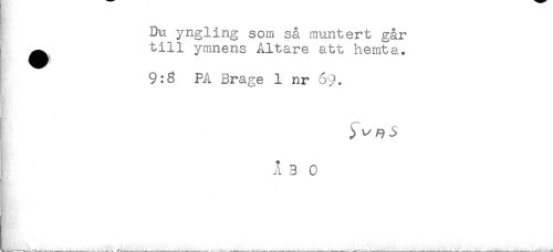 //// Du yngling som så muntert går //// ^ till ymnens Altare att hemta. //// 9:3 PA Brage 1 nr 69. //// M //// - //// i //// A 3 0 ////