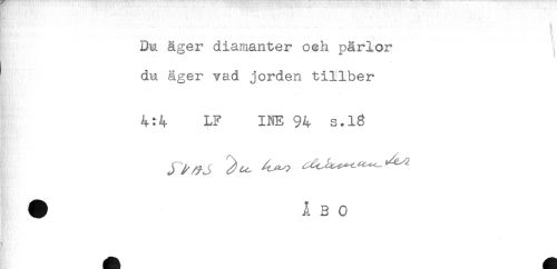 //// ' ' ' ....... ' ' ^ //// Du äger diamanter och pärlor //// du äger vad jorden tillber //// 4:4 LF INE 94 s.l3 ////