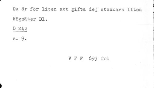 //// Du är för liten att gifta dej stackars liten //// * //// ! //// r //// Högsäter Dl. ^ //// D 242 i //// s. 9. ! //// V F F 693 fol - //// T ////