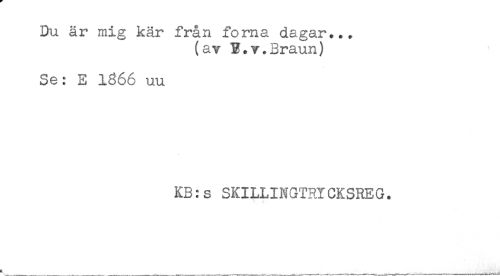 //// Du är mig kär från forna dagar... //// (av B.v.Braun) //// Se: E 1366 uu //// KB:s SKILLINGTRYCKSREG. //// *_____. __ ___. ___,_____,_-____. ////