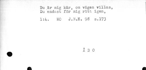 //// Du är mig kär, om vägen villas, //// Du endast för mig rätt igen, //// 1:4. HO J.N.E. 96 s.173 //// ÅBO ////