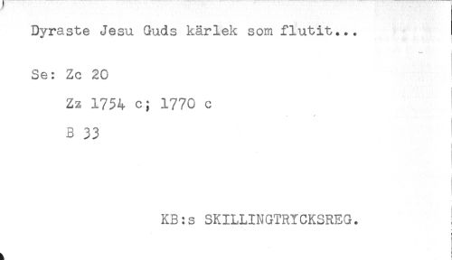 //// Dyraste Jesu Guds kärlek som flutit... //// Se: Zc 20 //// i //// Zz 1754 c; 1770 c //// B 33 //// i //// ! //// ! //// i //// < //// t ////