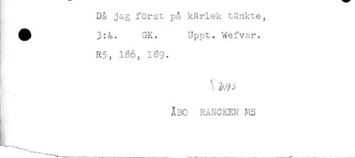 //// Då jag först på kärlek tänkte, //// ^ 3:4. GK. Uppt. Wefvar. //// t'' //// R5, 136, 139. //// i * //// ÅBO RANCKEN MS ////