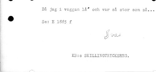 //// ! Då jag i vaggan la* och var så stor som så... //// ^ Se: E 1335 f //// < //// KB:s SKILLINGTRTCKSREG. ////