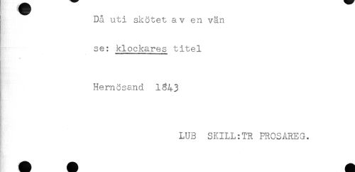 //// Då uti skötet av en vän //// se: klockares titel //// ' //// t //// I Hernösand //// . //// LUB SKILL:T'R PROSAREG. //// , ^ ^ ^ ^ //// i) ////