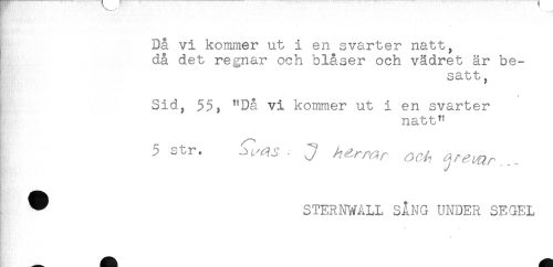 //// . - * //// Då vi kommer ut i en svarter natt, //// då det regnar och blåser och vädret är be- //// satt, //// Sid, 55, "Då vi kommer ut i en svarter //// natt" //// 5 str. J ^ //// ^ STERNWALL SANG UNDER SEGEL ////