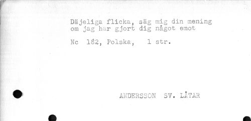 //// Däjeliga flicka, säg mig din mening //// om jag har gjort dig något emot //// ' Nc 162, Polska, 1 str. //// i' //// - //// ANDERSSON SV. LÅTAR //// n å ii! ////