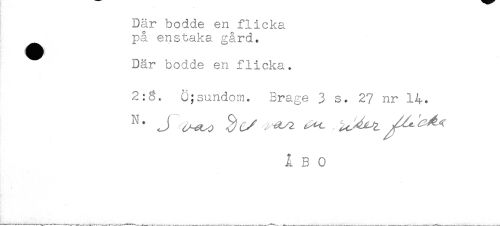 //// Där bodde en flicka //// på enstaka gård. //// Där bodde en flicka. //// 2:g. ö;sundom, Brage 3 s. 2? nr 14. //// '' J ^^ ^ ^^^ //// ÅBO ////