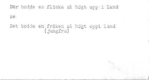 //// Där bodde en flicka så högt upp i land //// se //// ** //// Det bodde en fröken så högt oppi land //// (jungfru) //// - //// t //// ___^ _ __.... ___ //// /
