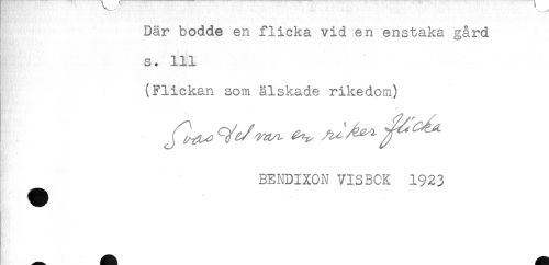 //// Där bodde en flicka vid en enstaka gård //// *. //// s. 111 //// - //// (Flickan som älskade rikedom) //// -* //// BENDIXON VISBOK 1923 ////