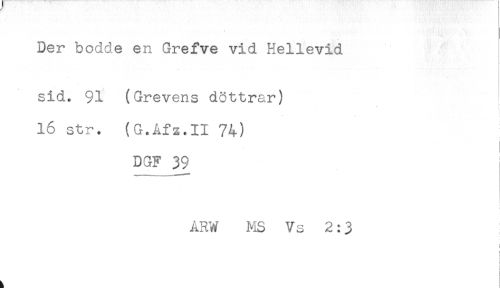 //// Der bodde en Grefve vid Hellevid //// sid. 91 (Grevens döttrar) //// i //// 16 str. (G.Afz.II 74) //// DGF 39 //// ARW MS Vs 2:3 //// t //// ! ////
