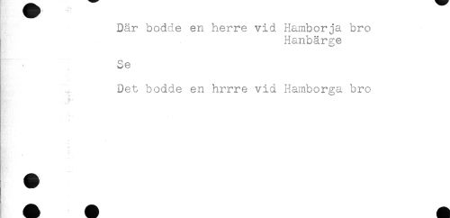 //// Där bodde en herre vid Hamborja bro //// Hanbärge //// Se //// Det bodde en hrrre vid Hamborga bro //// i //// B- < //// * ////