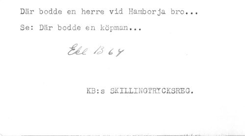 //// Där bodde en herre vid Hamborja bro... //// Se: Där bodde en köpman... //// KB;s SKILLINGTRYCKSREG. //// \ ___.__ .. < ., - . . .,-. - ... . ___. .. ....----- -----^. ^_* - -. - - ....___-,- ////