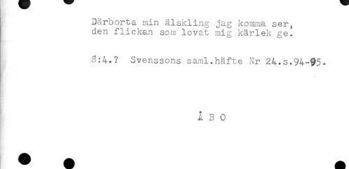 //// Därborta min älskling jag komma ser, //// den flickan som lovat mig kärlek ge. //// 3:4.? Svenssons saml.häfte Nr 24.s.94-$5. //// ÅBO ////