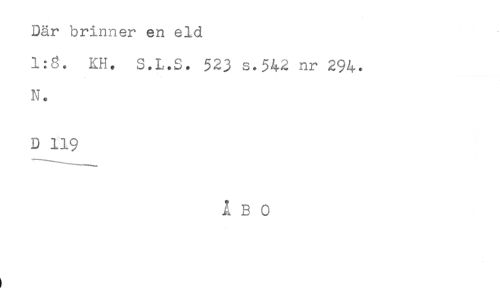 //// Där brinner en eld //// 1:3. KH. S.L.S. 523 s.542 nr 294- //// N. //// D 119 //// ÅBO ////