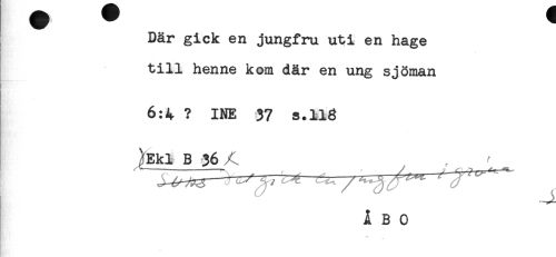 //// i Där gick en jungfru uti en hage //// till henne kom där en ung sjöman //// 6:4 ? INE 37 s.116 //// ÅBO ////
