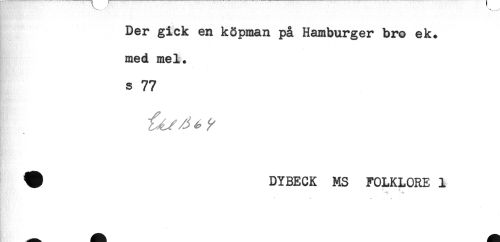 //// Der gick en köpman på Hamburger bro ek. //// med mel. //// s 77 //// H DYBECK MS FOLKLORE 1 //// : ^ ^ ^ ////