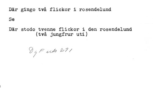 //// Där gingo två flickor i rosendelund //// Se //// Där stodo tvenne flickor i den rosendelund //// (två jungfrur uti) ////
