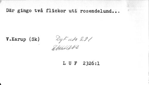 //// Där gingo två flickor uti rosendelund... //// V.Karup (Sk) ^ ^ ^^^ //// L U F 2326:1 //// < ////