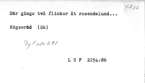 //// Där gingo två flickor åt rosendelund... //// Högserad (Sk) //// //// /L U F 2254:^6 ////
