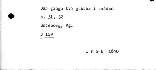 //// Där gingo två gubbar i snöden //// # s. 31, 32 //// Söteborg, Vg. //// 4 //// D 129 //// I F G H 4650 //// t'- ////