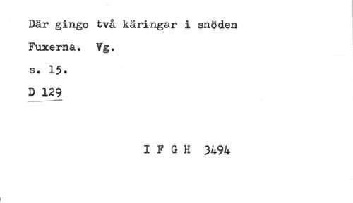 //// Där gingo två käringar i snöden //// Fuxerna. Vg. //// s. 15. //// D 129 //// I F G H 3494 ////