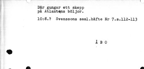//// Där gungar ett skepp //// på Atlantas böljor. //// 10:3.? Svenssons saml.häfte Nr 7.s.112-113 //// . //// Cf. * //// < //// gt. - //// ÅBO ////