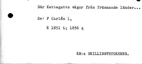//// Där Kattegatts vågor från främmande länder... //// !! //// ^ Se: F Carlén //// E i; 1356 q //// KB:s SKILLINGTRYCKSREG. ////