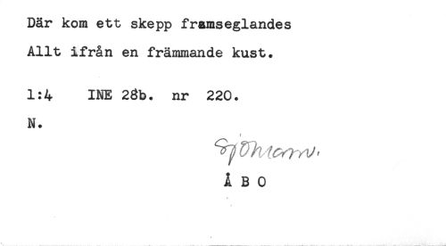 //// Där kom ett skepp framseglandes //// Allt ifrån en främmande kust. //// 1:4 INE 23b. nr 220. //// N. //// t //// ÅBO ////