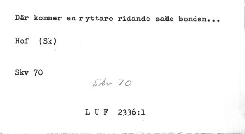 //// Där kominer en ryttare ridande sade bonden... //// Hof (Sk) //// - //// . //// < //// Skv 70 //// ! //// L U F 2336:1 ////