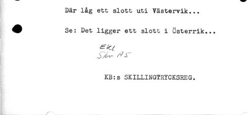 //// Där låg ett slott uti Västervik... //// Se: Det ligger ett slott i Österrik... //// KB:s SKILLINGTRYCKSREG. ////