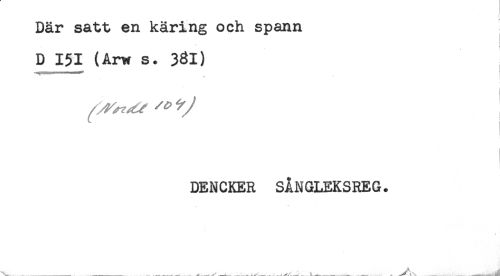 //// Där satt en käring och spann //// D 151 (Arw s. 381) //// i-"-*" <* t //// ) //// i //// DENCKER SÅNGLEKSREG. ////