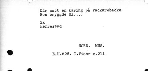 //// Där satt en käring på rackarebaeke //// Hon bryggde 81.... //// Sk //// Herrestad //// MORD. MUS. //// ^ E.U.623. 1.Visor s.211 ////