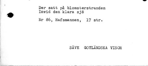 //// Der satt på blomsterstranden //// ^^ Invid den klara sjö //// Nr 36, Hafsmannen, 1? str. //// < //// ; SÄVE GOTLÄNDSKA VISOR ////