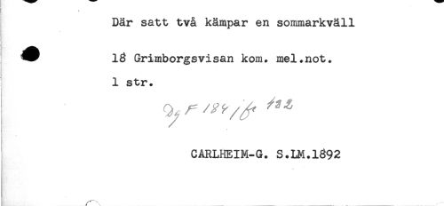 //// ! //// Där satt två kämpar en sommarkväll //// ! //// ^^ 16 Grimborgsvi san kom. mel.not. //// 1 str. //// CARLHEIM-6. S.IM.1692 //// _ ..... .....- ////